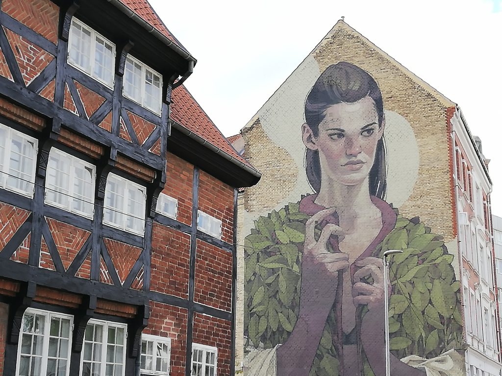 We slingeren ten noorden van het Limfjord naar Aalborg. Er hangt een prettige, aangename sfeer in de stad waar naast oude gebouwen ook veel muurkunst te vinden is. We ontdekken er een aantal tijdens onze wandeling door de stad. Op de terugweg naar de camping lopen we langs de havens waar we nog een stop maken bij een oude fabriekshal met truckfood-kraampjes. Een mooie afsluiter van de dag.