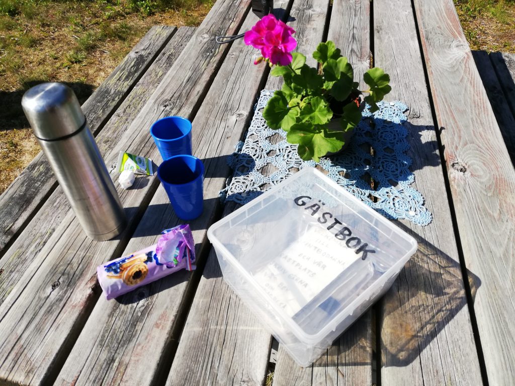 Naast al het moois spotten we ook twee auerhoenen en een visarend en soms worden we aangenaam verrast door een uitnodigende picknickplaats waar we graag gebruik van maken!!!