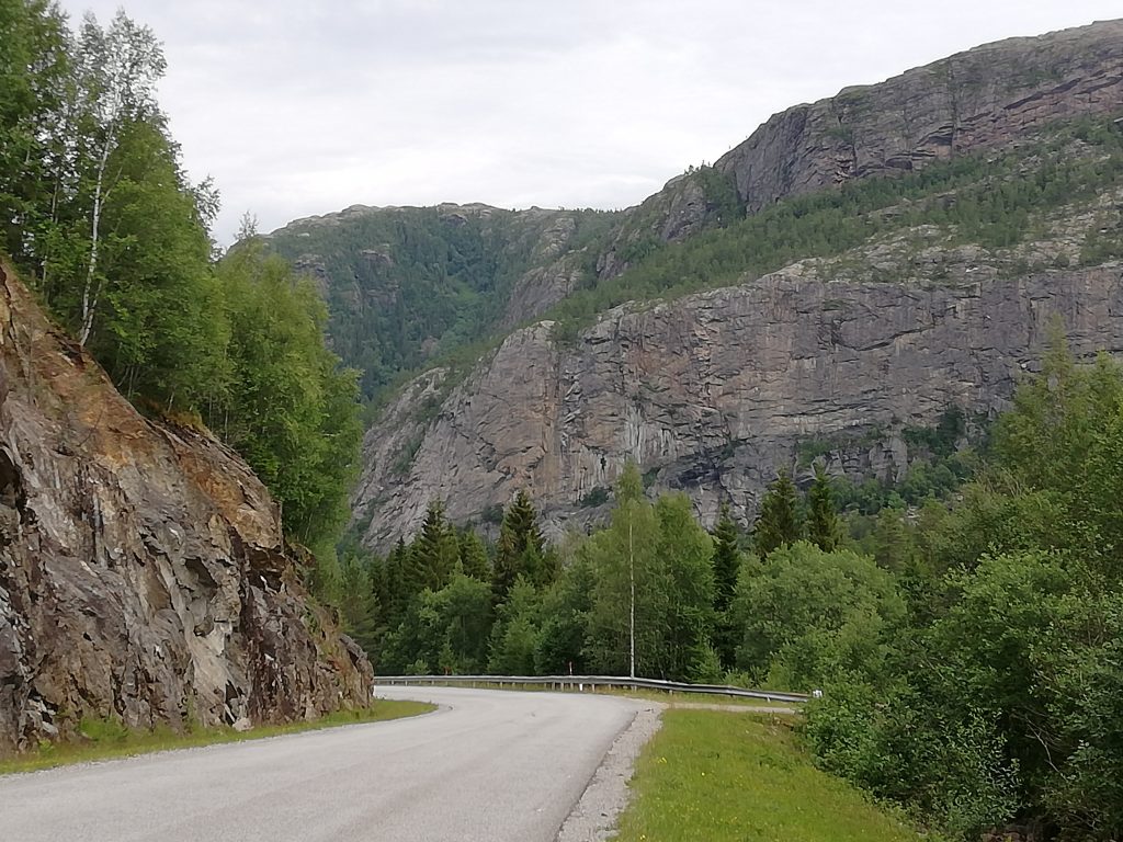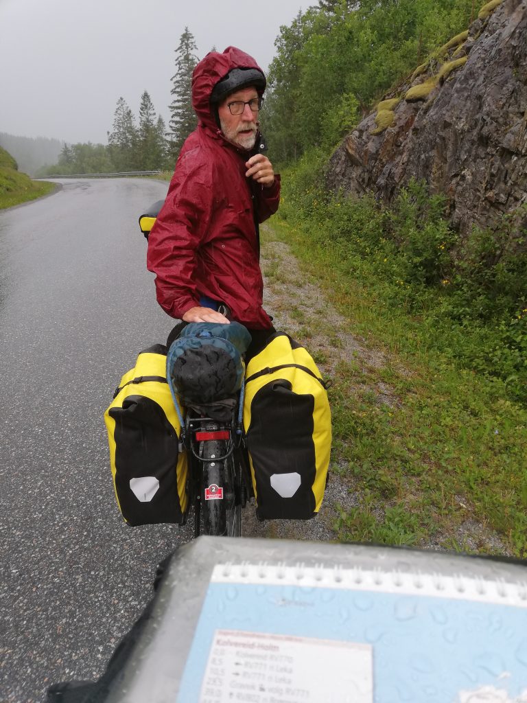 In fris gewassen spullen kunnen we weer vooruit. Het lijkt erop alsof na drie dagen ook de Noorse bergen beginnen te wennen, of zijn het misschien de zoete koeken die we als tweede ontbijt naar binnen werken en die ons naar boven helpen. Maar om nu te spreken van ‘piece of cake’ is ook weer overdreven want nog steeds worden de koeken na vijf minuten platgeslagen op het wegdek.