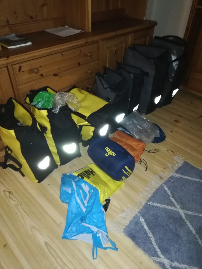 Voor onze middagpauze vinden we een droog plekje langs de weg en ‘zoef!’ daar komen twee Nederlandse fietsers voorbij die we in onze coronawachttijd hebben gevolgd op hun website en een paar tellen later zien we Tiemo en Bianca met bus, caravan, fietsen en kajaks voorbij komen …