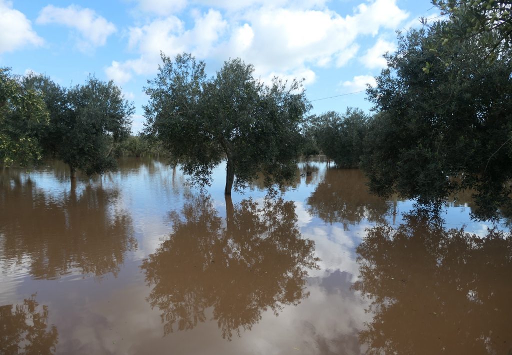 Onderweg zien we dat de zon meer tijd nodig heeft om het water na de onweersbui van enkele dagen geleden te laten verdampen. Niet alles heeft daar droge voeten aan over gehouden.