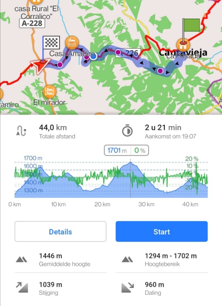 Langzaam, langzamer, langzaamst, totdat we worden gedwongen om af te stappen. Ach, het is gelukkig mooi weer dan wandelen we het laatste stuk toch. Op dat moment komt er een Spaans engeltje voorbij: een wit busje stopt naast ons. De achterportieren worden uitnodigend geopend, wij hoeven geen seconde na te denken en grijpen deze kans met vier handen aan. De fietsen met bagage achterin, de fietsers voorin en zo brengt Pedre ons tot op de drempel van de hostal.