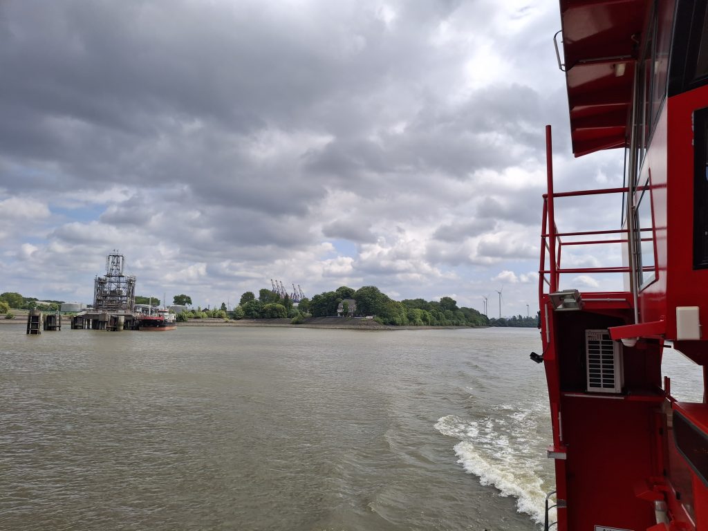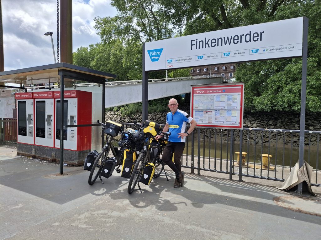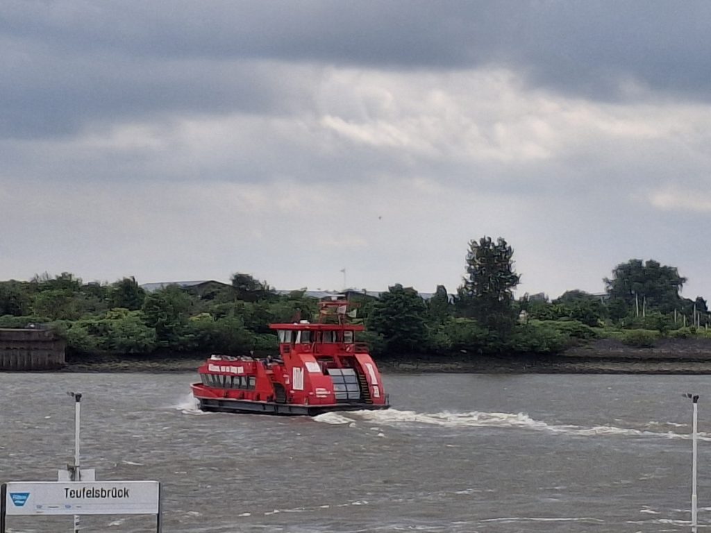 En dan komen we weer bij de Elbe uit. Deze keer steken we de Elbe over bij Hamburg en maken geen gebruik van het pont kilometers verderop bij Glückstadt. Wordt het brug of tunnel … uiteindelijk stappen we in Finkenwerder op de busboot en hoppen zo naar de overkant naar Teufelsbrück. Zo vermijden we de drukte van de stad, ondanks mooie herinneringen laten we Hamburg deze keer aan ons voorbij gaan.