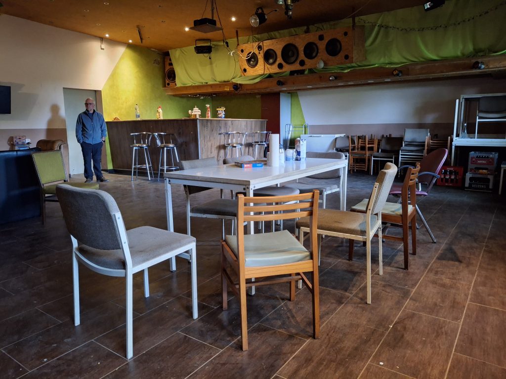 Op de Alpaca camping zonder Alpaca’s maar met veel wind installeren we ons in een winddichte garage om ons potje te koken en te eten. Als de eigenaresse even later binnen loopt wijst ze ons op de zaal er naast. Daar kunnen we ook nog gebruik van maken als we willen. De dansvloer, muziekinstallatie, de bar en het biljart laten we met rust. De waterkoker daar gaan we morgenochtend beslist gebruik van maken!