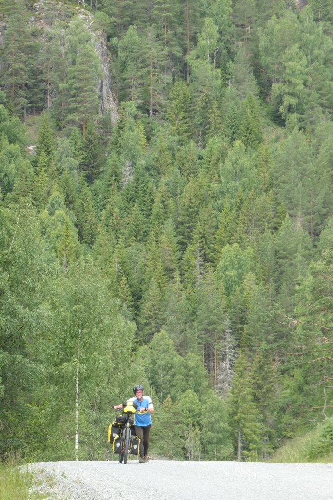 Vanaf Gol is het een ontspannen rit naar Stavn. Wij verbazen ons over de vele gesloten campings in het dal. Later wordt ons duidelijk dat er in augustus 2024 een grote overstroming is geweest van de Hallingdalselva. Door het koude voorjaar was de sneeuw in de bergen pas in augustus gaan smelten gecombineerd met hevige regenval. Vanaf de Hardangervidda zocht de watermassa de ruimte naar beneden. Caravans, campers en auto’s werden meegesleurd door de rivier, campingterreinen en voorzieningen verwoest. Nog steeds zijn er in het dat mensen die niet terug mogen of terug kunnen naar hun huis. Voor de kampeerterreinen is daarna geen moeite gedaan om alles weer op te knappen, het zou zomaar weer kunnen gebeuren.