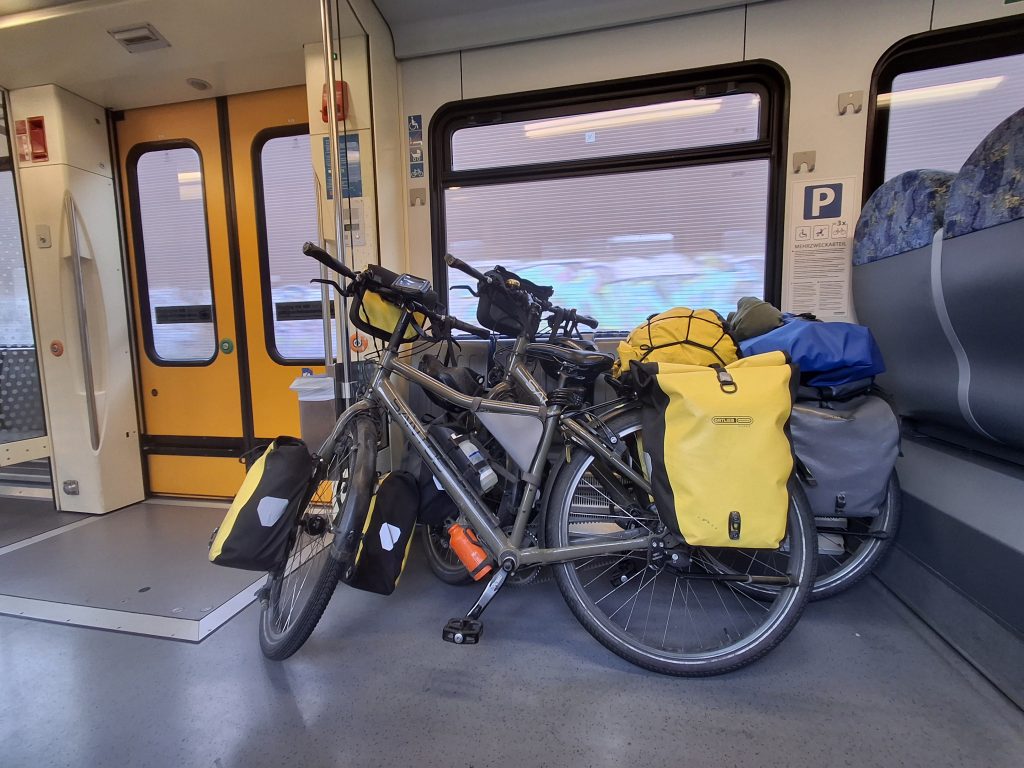 Een lange dag onderweg door half Duitsland, van station naar trein, liften van het ene perron naar het andere, van een rustig overstap naar een net niet te halen overstap. Dat geeft dan wel weer extra tijd om even nieuwe verse lucht binnen te halen. Fietswielen tussen kinderwagens, balanceren tussen rugzakken van een groep scouts tassen af- en aanhaken. Langzaam wordt het later en rustiger in de wagons en op de stations.